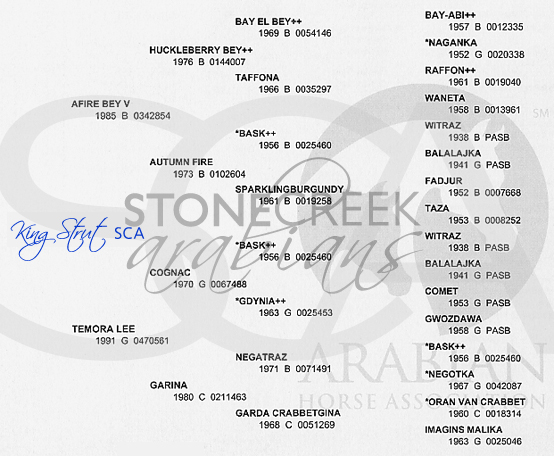 King Strut SCA - his name says it all! Sired by Afire Bey V and out of a National Champion Cognac daughter. He's a full sibling to US Top Ten English mare, Tula Afire SCA.