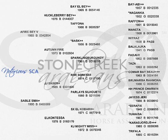 Notorious is a 6 year old gelding sired by Afire Bey V. Super talented with great motion, a nice long hooky neck, and all the right markings. Click here for pedigree. |