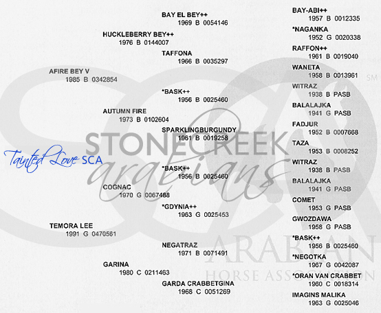 Temora Lee was US National Champion Futurity and produced Tula Afire SCA who was US National Top Ten Junior English. Tainted has the same look and talent as her older sister.